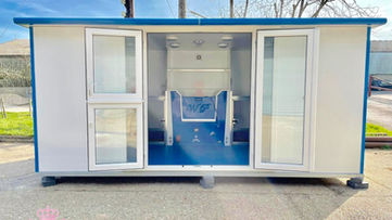 Volledig op zichzelf staand en sluit eenvoudigweg aan op het elektriciteitsnet via de kabel van 25 m voor een standaard 16 ampère stroomkring (of upgrade naar 64 amp als er meer stroom nodig is), en sluit uw slang aan op de externe slangvergrendeling voor de watertoevoer. Als er geen tuinslang beschikbaar is, kunnen we interne zoetwatertanks en externe afvalwatertanks installeren.